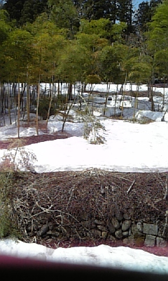 家の裏はどれくらい雪が残っているかと見てみたら、
